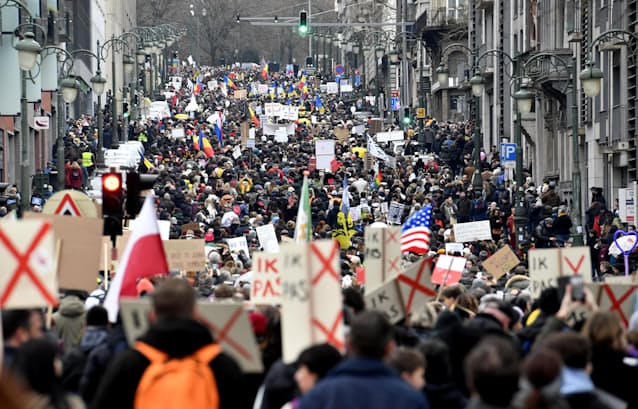 ブリュッセルで5万人デモ ワクチン接種や規制に抗議